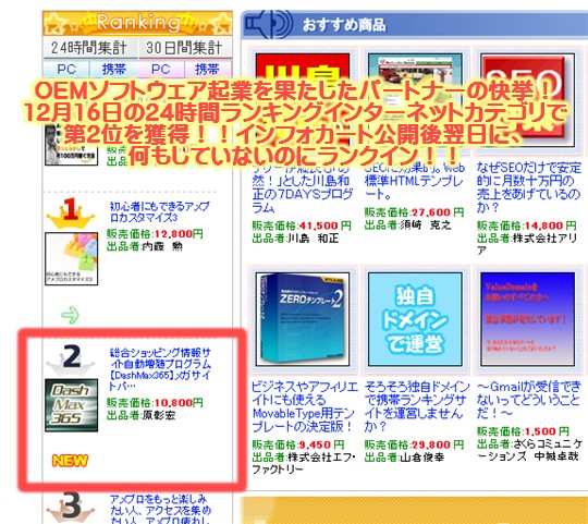★OEMの成功事例!インフォカート24時間ランキングでインターネット部門第2位を獲得!!インフォカートで公開翌日、まだ何もしないうちから売上発生!!